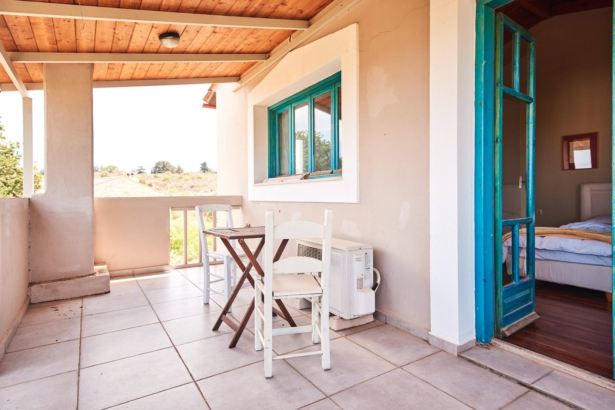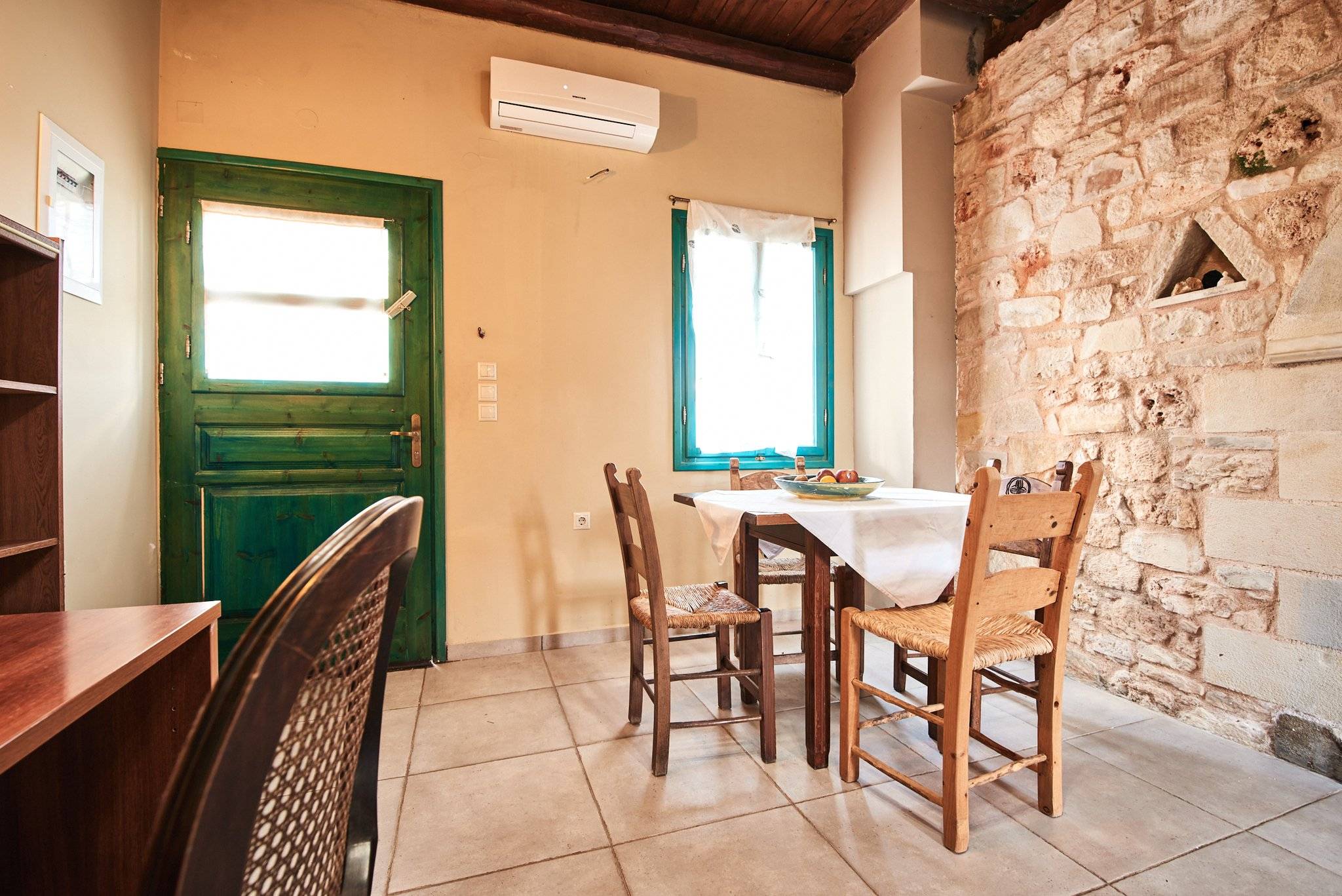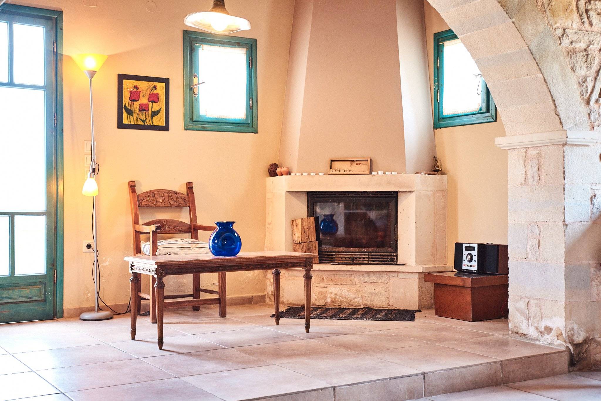 “Elia” guesthouse provides a relaxing and welcoming atmosphere. It has a unique architectural character which is inspired by tradition combining it with modern comfort. On the ground floor you will find the spacious living room with a fireplace and a beautiful arch. There is also one single bed, a fully equipped kitchenette and a bathroom with shower. Upstairs you will find the master bedroom with two single beds and a private bathroom with a bathtub. The two private balconies offer view of the sunset and the olive grove. Mini fridge, TV, air conditioning, free WiFi, toiletries and bedding are included.