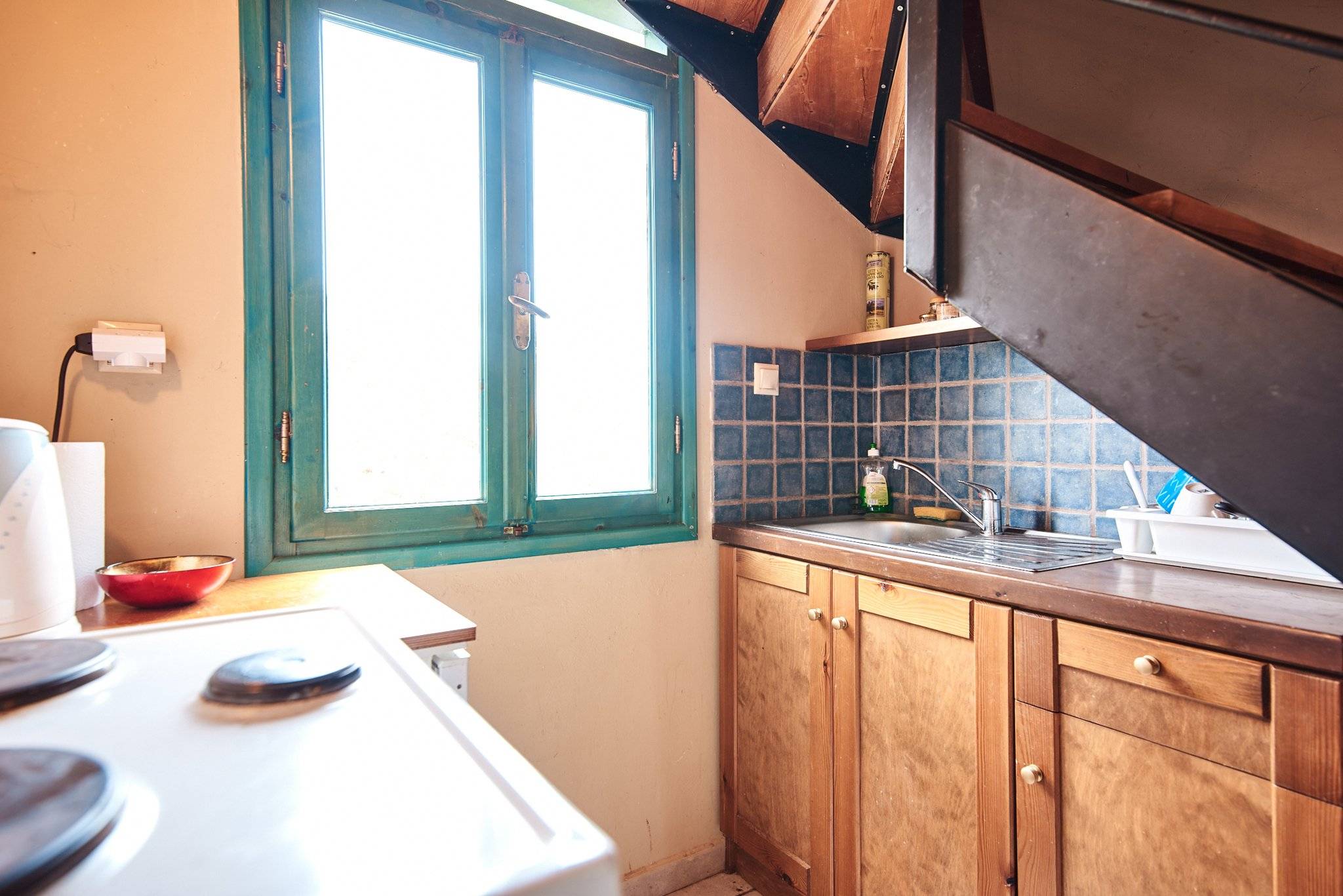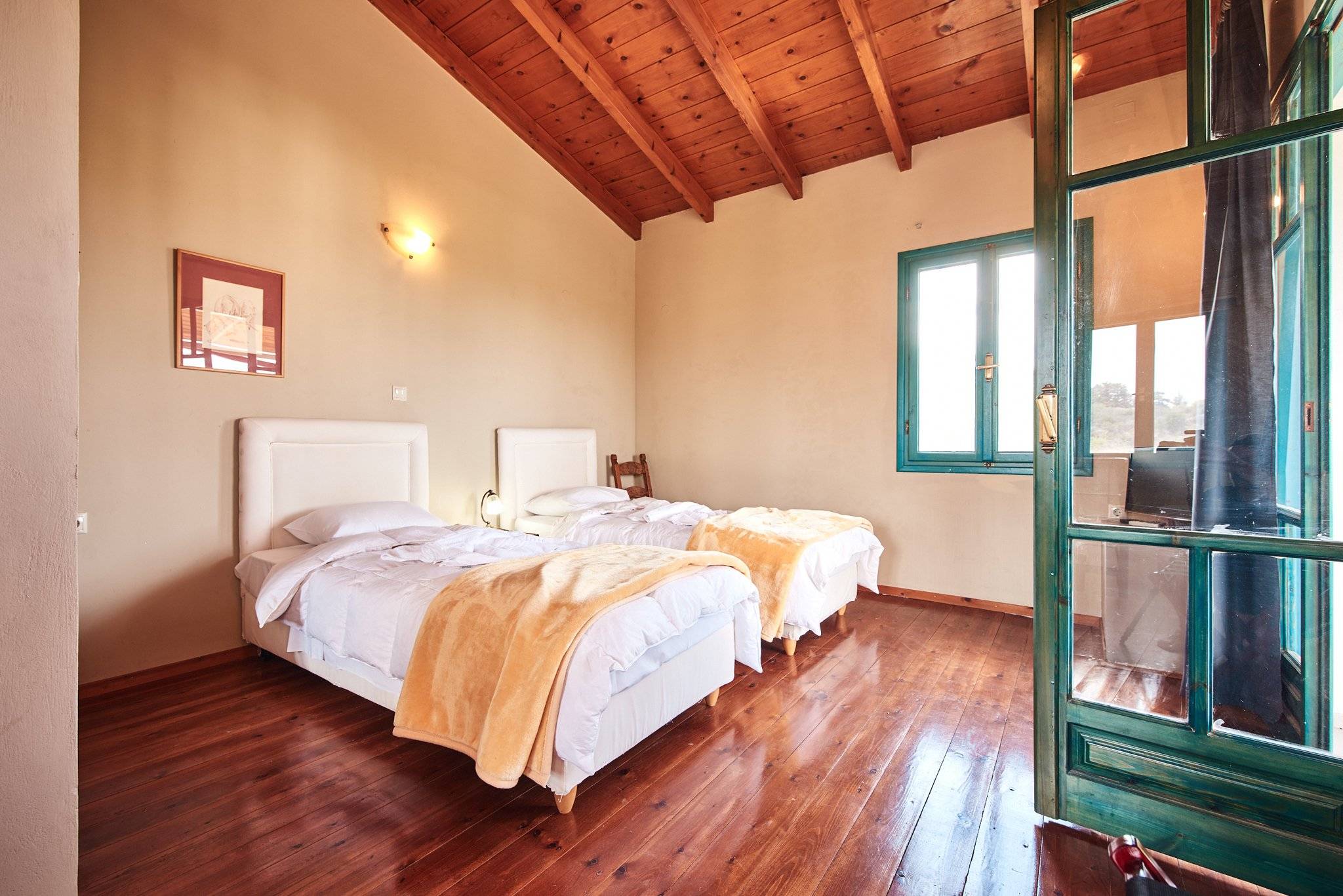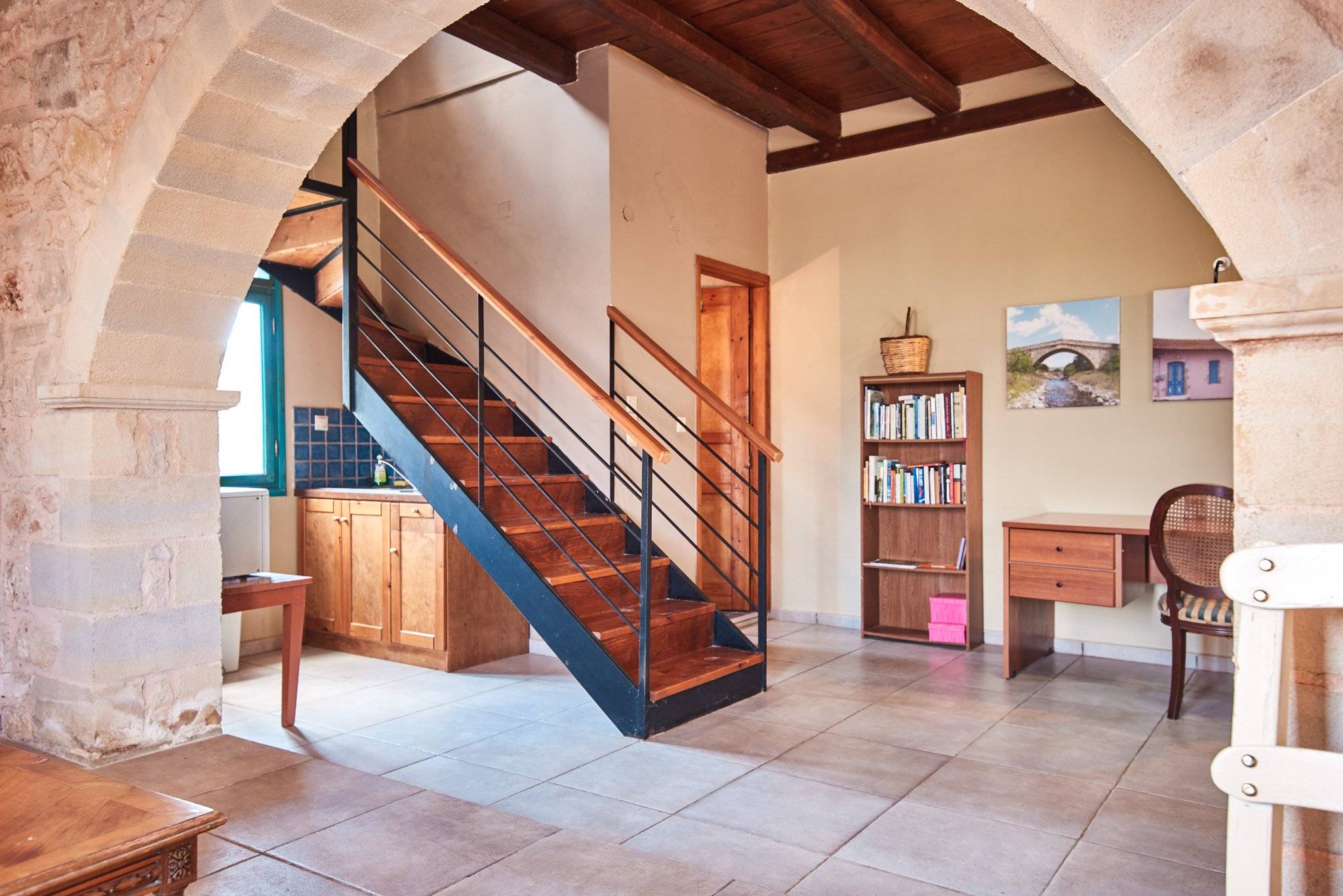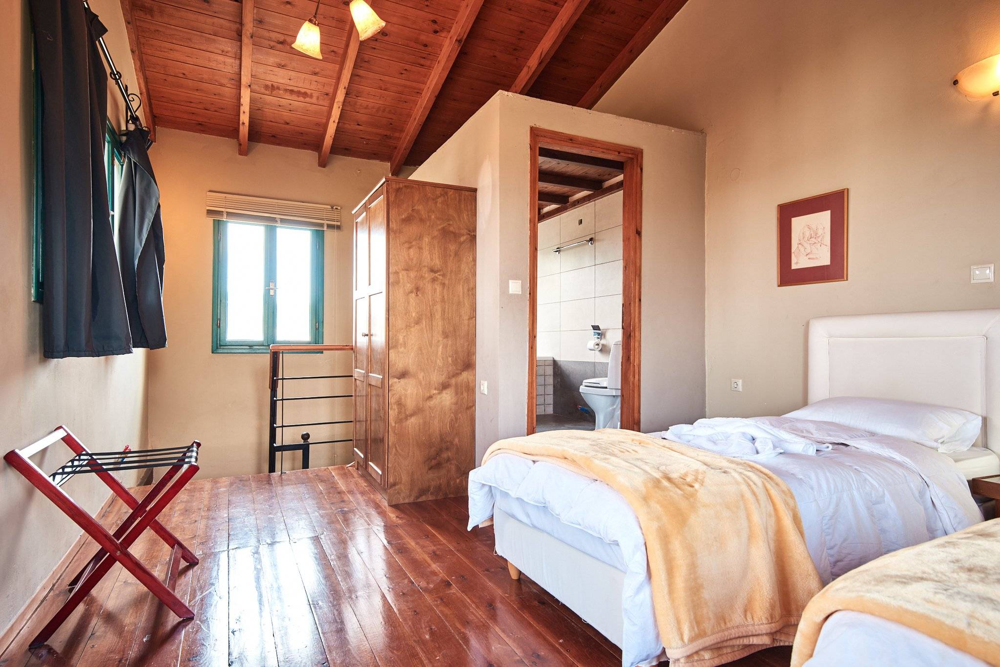 “Elia” guesthouse provides a relaxing and welcoming atmosphere. It has a unique architectural character which is inspired by tradition combining it with modern comfort. On the ground floor you will find the spacious living room with a fireplace and a beautiful arch. There is also one single bed, a fully equipped kitchenette and a bathroom with shower. Upstairs you will find the master bedroom with two single beds and a private bathroom with a bathtub. The two private balconies offer view of the sunset and the olive grove. Mini fridge, TV, air conditioning, free WiFi, toiletries and bedding are included.