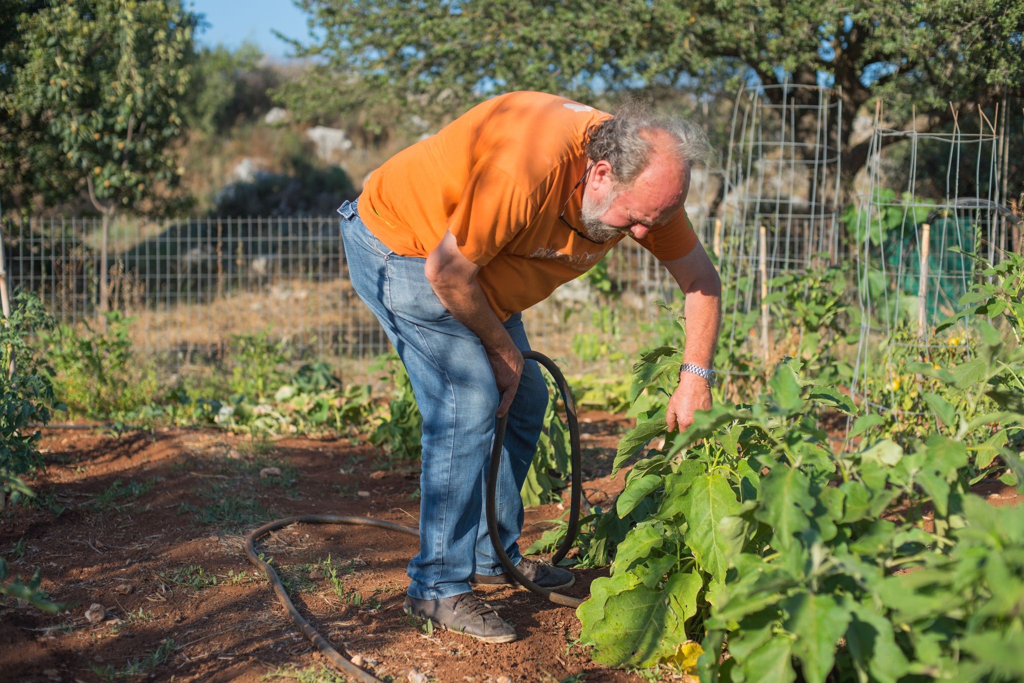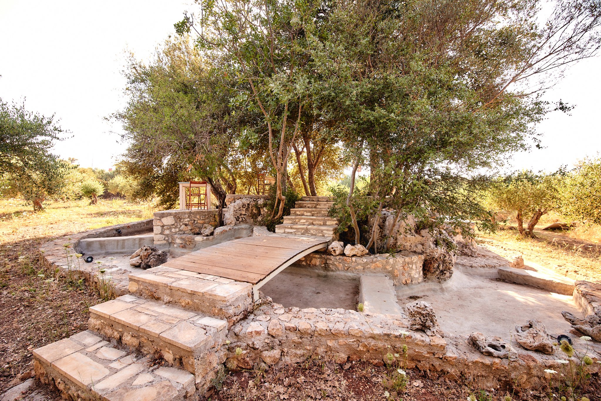 The houses are surrounded by centuries-old olive trees, oak trees, fruit trees, flowers and various aromatic plants. There is a stone-built amphitheater where various events and agritourism activities are organized. The farm is inhabited by domestic animals such as hens, turkeys, guinea fowls, lambs, rabbits where they maintain the harmonious balance in the cycle of nature. Seasonal vegetables are grown in the vegetable garden using sustainable cultivation methods (permaculture).